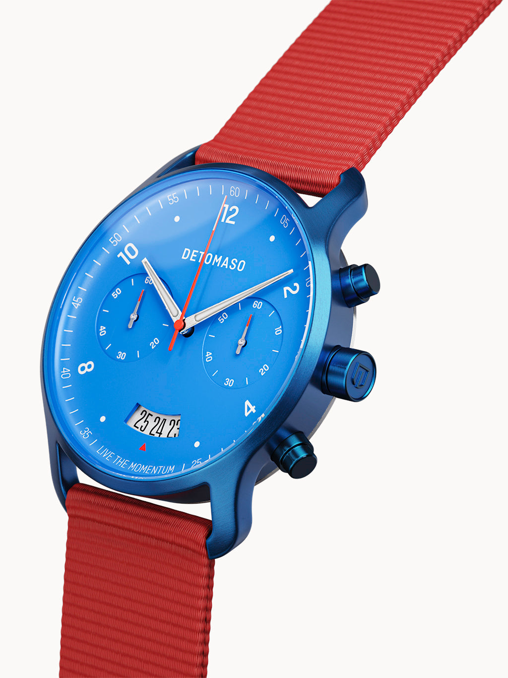 Clean lines and a sporty, powerful design: The curved dial of the SORPASSO CHRONOGRAPH, with its deep chronograph sub-dials, allows for intuitive timekeeping. The technical highlights of this watch are just as impressive as its appearance. With the chronograph function, you can precisely stop every second and capture special moments. Your reliable companion for every adventure.