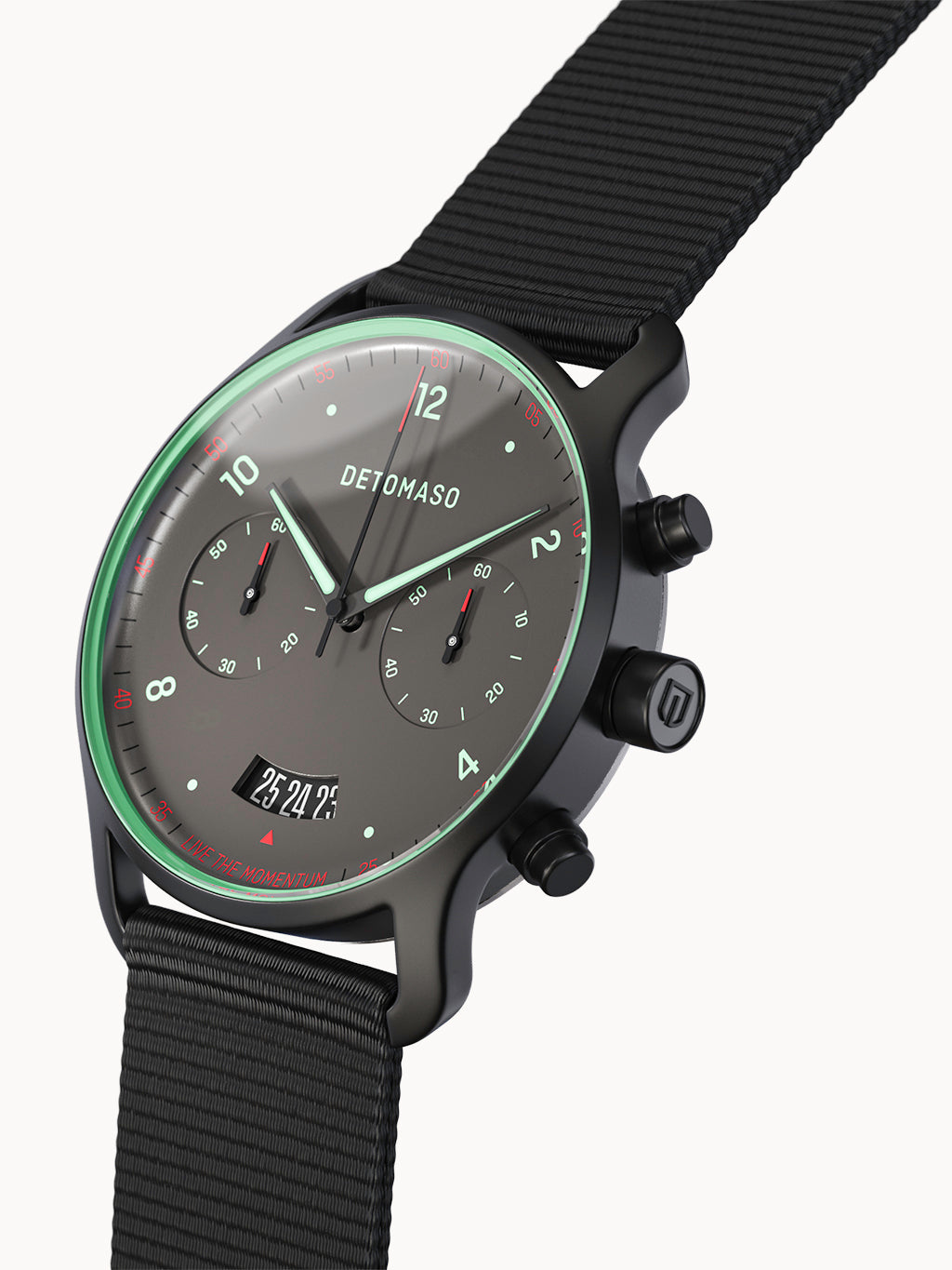 Clean lines and a sporty, powerful design: The curved dial of the SORPASSO CHRONOGRAPH, with its deep chronograph sub-dials, allows for intuitive timekeeping. The technical highlights of this watch are just as impressive as its appearance. With the chronograph function, you can precisely stop every second and capture special moments. Your reliable companion for every adventure.