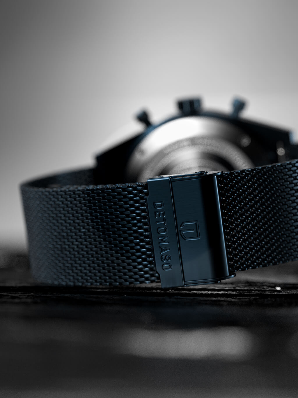 Intricately woven mesh strap made of anti-allergenic surgical steel offers a sleek look and maximum comfort. The steel weave provides durable but flexible band - perfected to math any adventure. The mesh band is finished with an finger print repellent coating to keep the watch pristine through it's life.