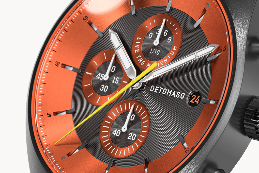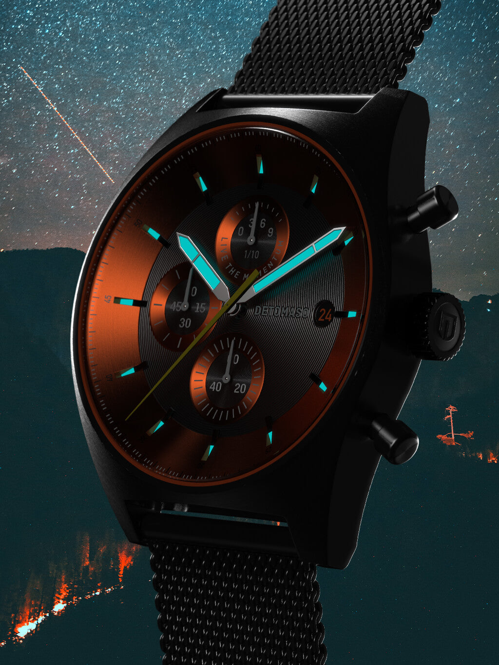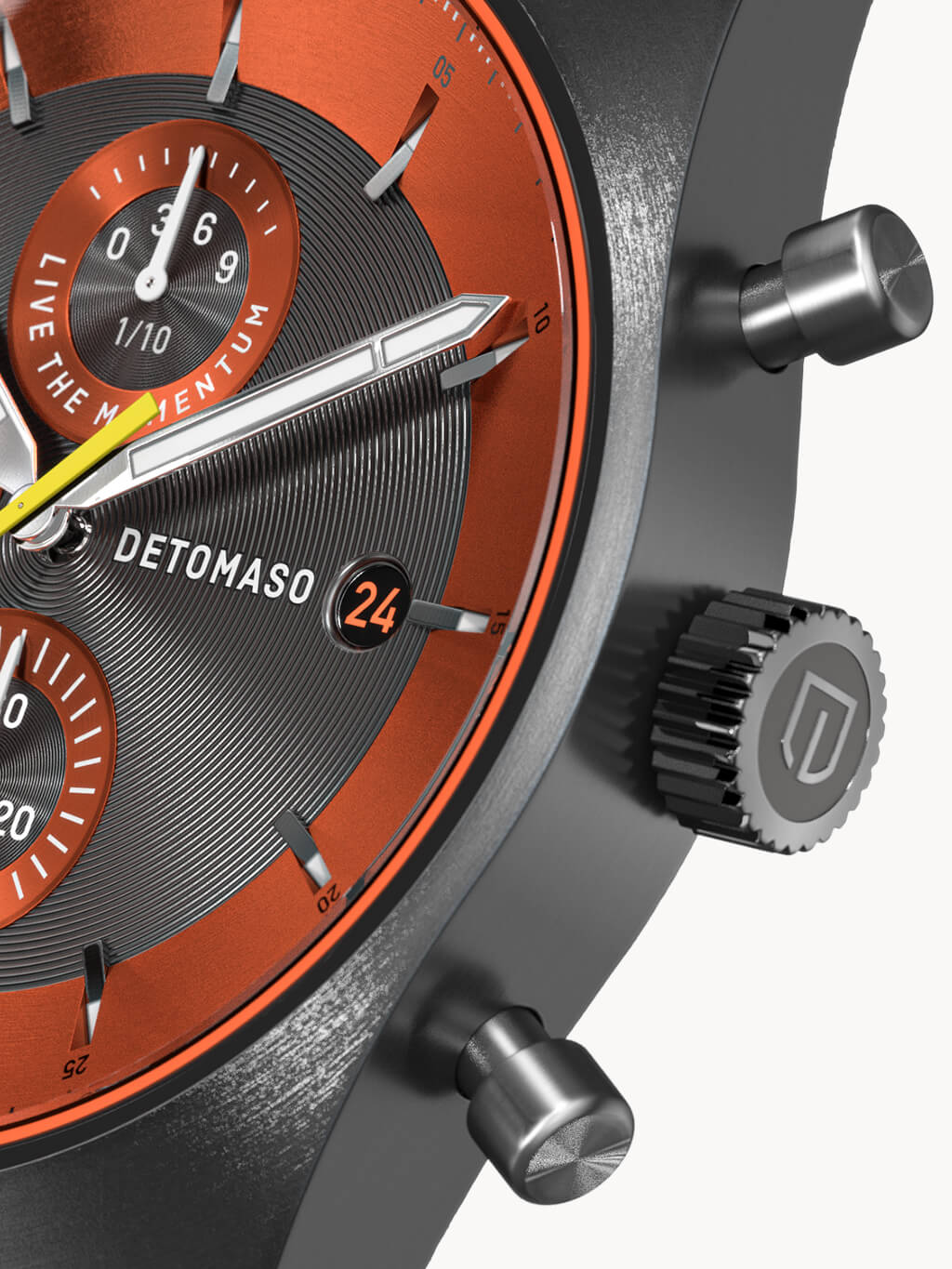 The D10 CHRONOGRAPH is not only inspired by the desire for travel, but rather also by the extraordinary designs from the 70s. Because which era stood more for a pioneering spirit than this? Round shapes and striking color accents provide for a stylish retro tribute. This makes the chronograph extremely dynamic in its own way.