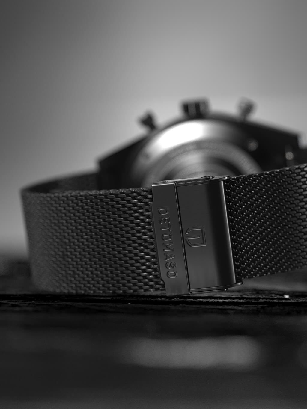 Intricately woven mesh strap made of anti-allergenic surgical steel offers a sleek look and maximum comfort. The steel weave provides durable but flexible band - perfected to math any adventure. The mesh band is finished with an finger print repellent coating to keep the watch pristine through it's life.