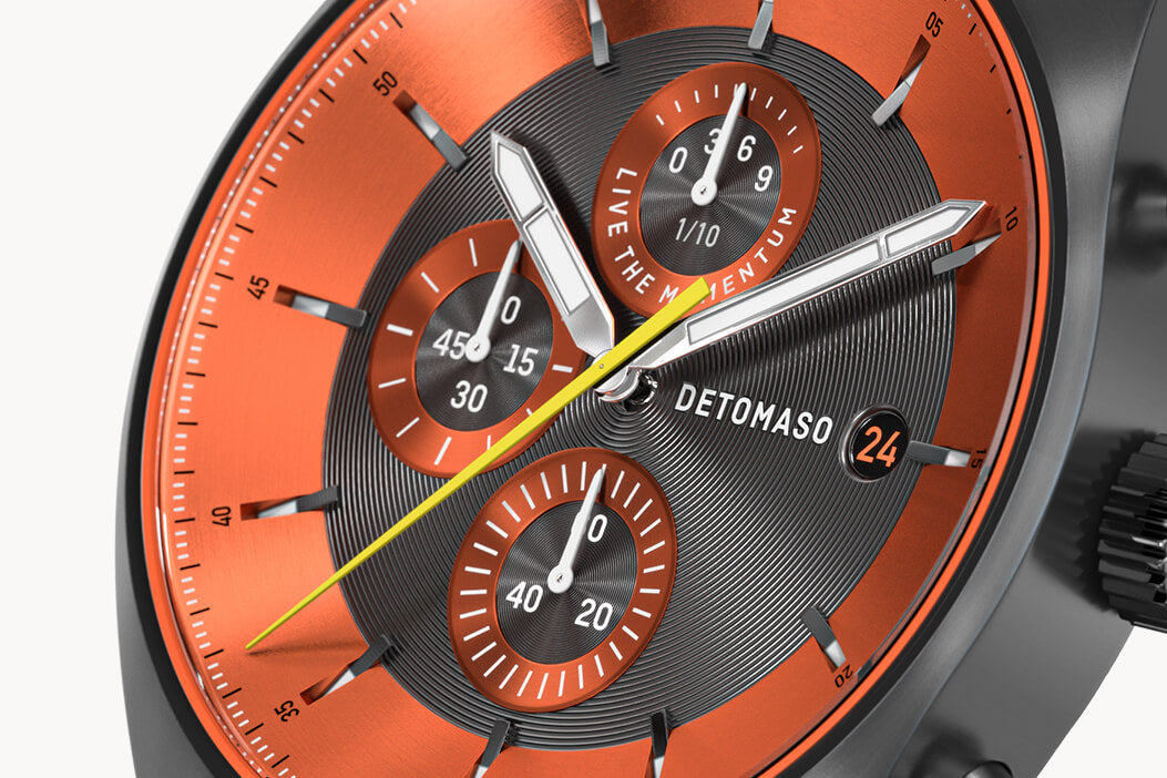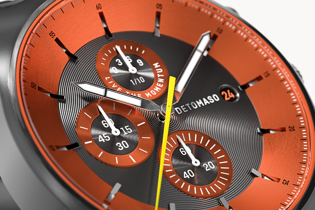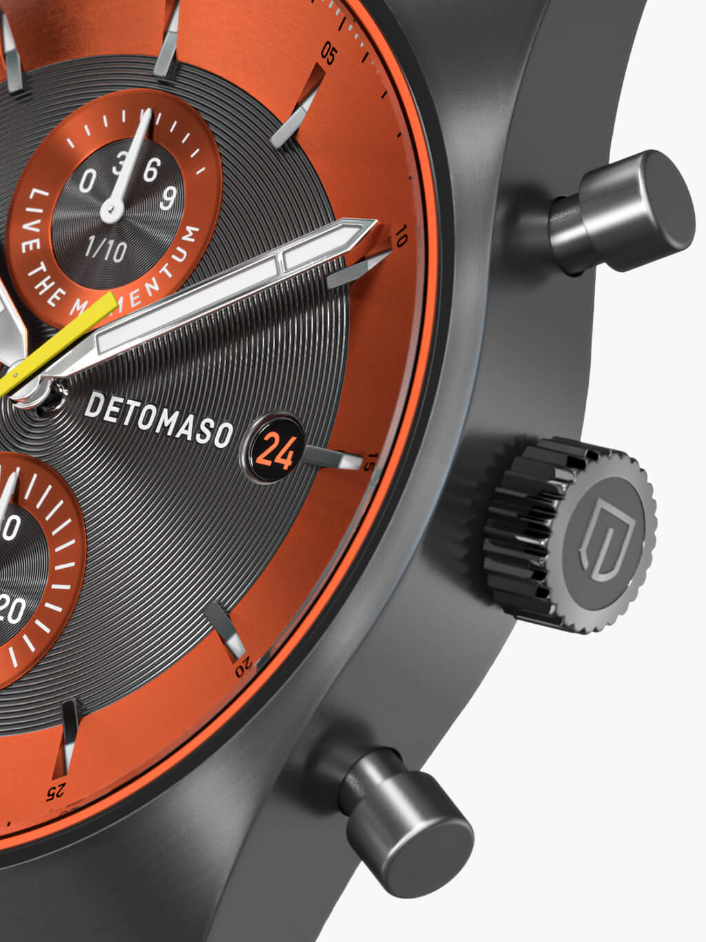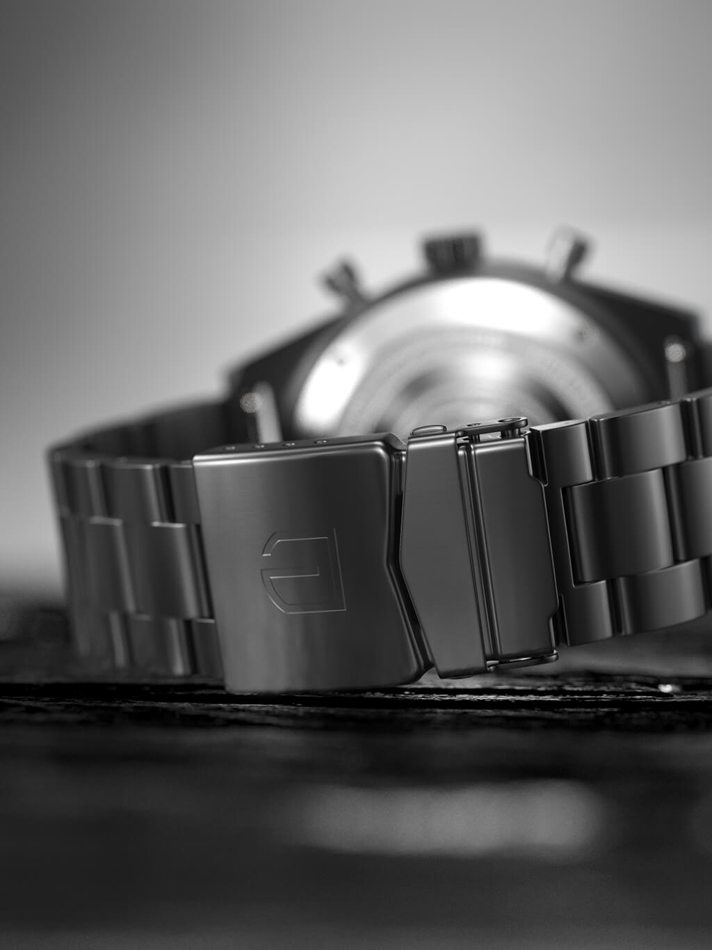 The D10 CHRONOGRAPH is not only inspired by the desire for travel, but rather also by the extraordinary designs from the 70s. Because which era stood more for a pioneering spirit than this? Round shapes and striking color accents provide for a stylish retro tribute. This makes the chronograph extremely dynamic in its own way.