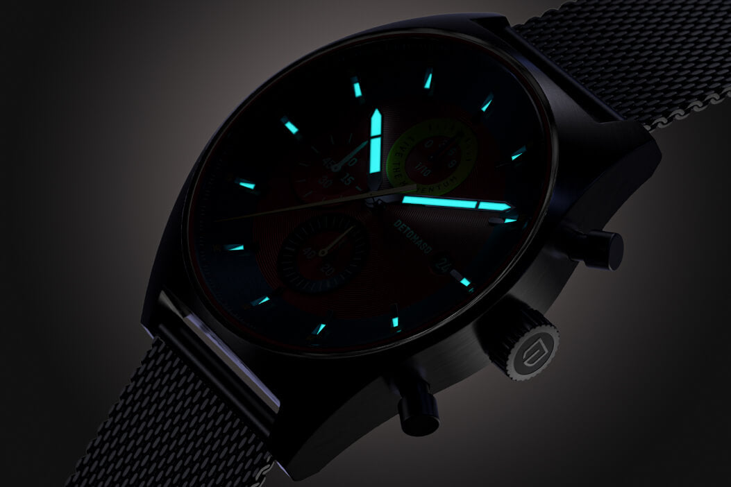 A highlight of the D10 CHRONOGRAPH becomes truly visible in the dark. The hour and minute hands are coated with Superluminova. In the dark, these elements begin to glow – allowing you to read the time at a glance, even at night.