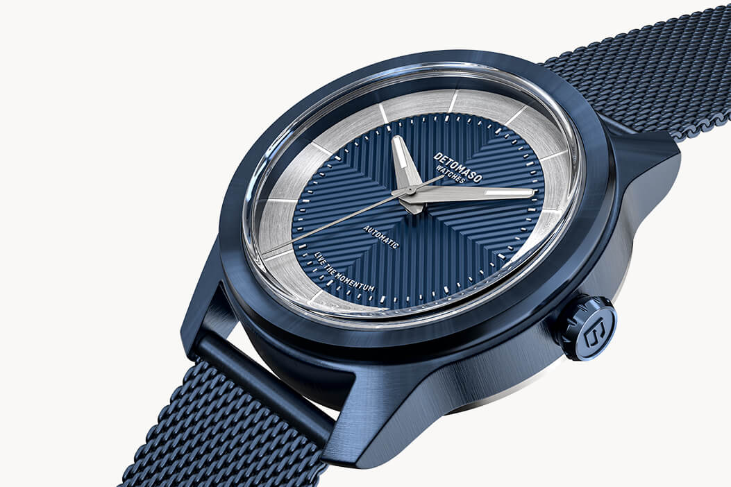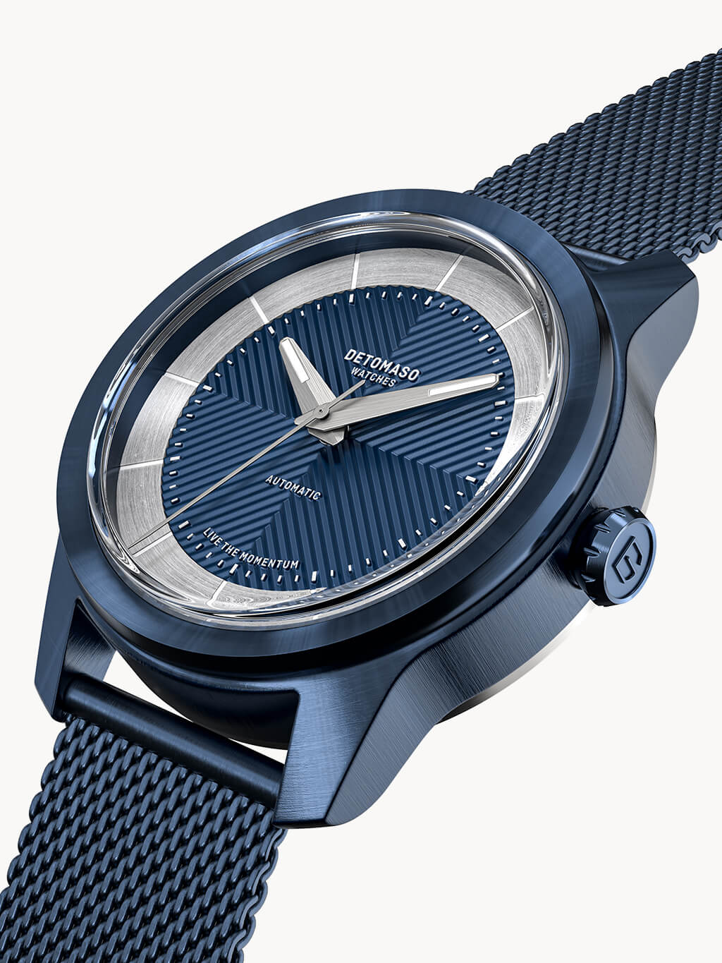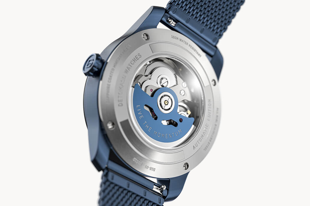 Very beautiful navy blue automatic watch with orange crown that reminds me of the sea and the sun. The watch is accurate with a good power reserve all at a competitive price.