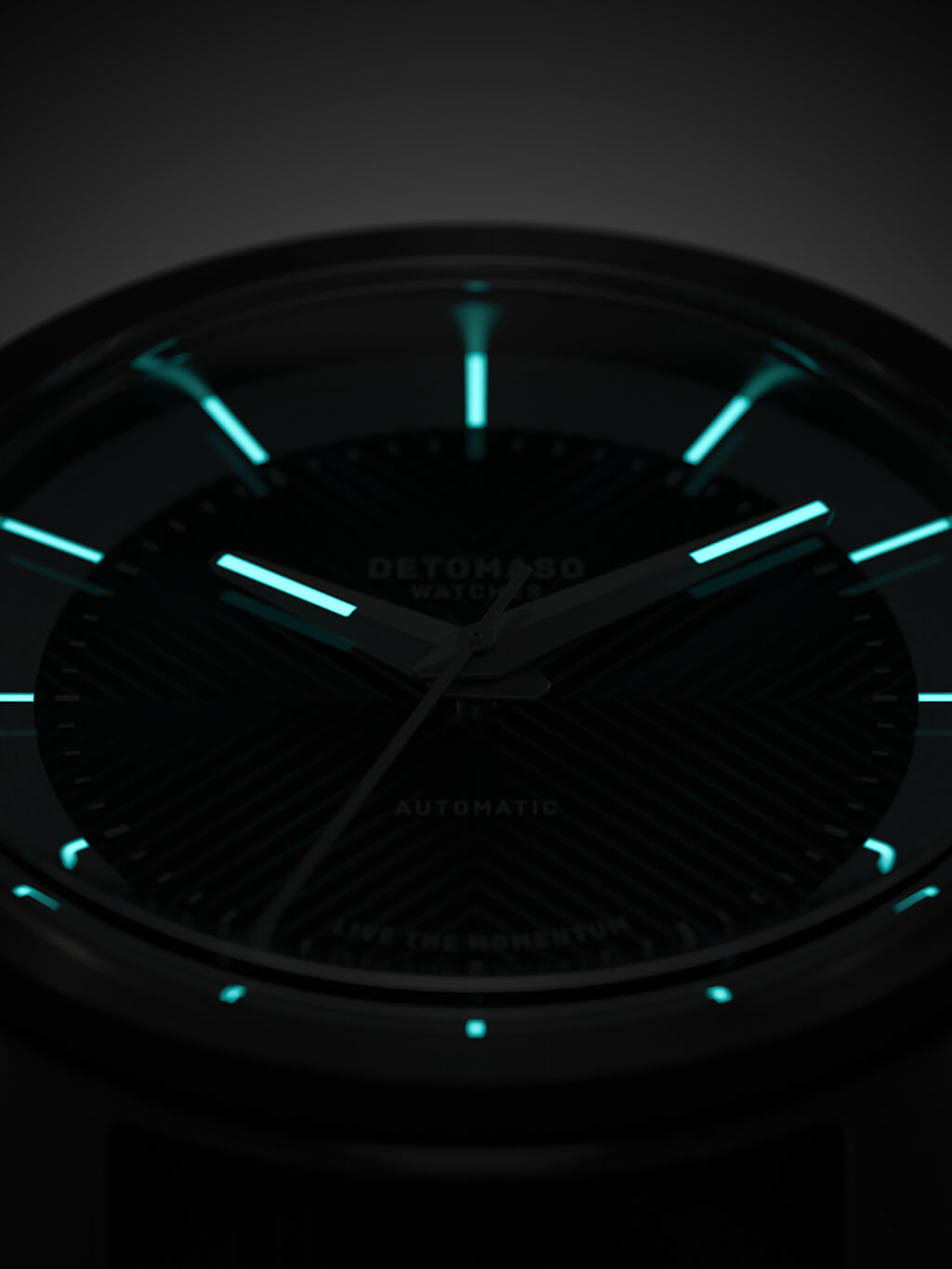 The Superluminova coating on the 12-hour markers and the hour and minute hands ensures that you can easily read the time even in the dark. It charges through exposure to light and glows in darkness. This guarantees clear visibility anytime—day or night—dependable and practical.