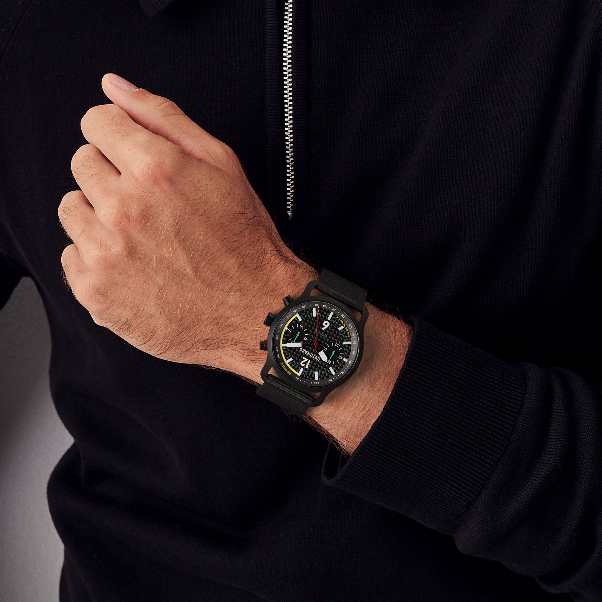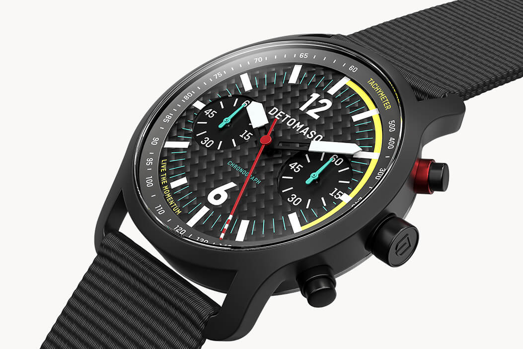 It's no wonder carbon that is so often used in sports. The material is particularly light and it has an almost unlimited service life. We have taken advantage of these properties and developed a carbon dial for our SORPASSO CHRONO CARBON – pleasant wearing comfort and durability are guaranteed.